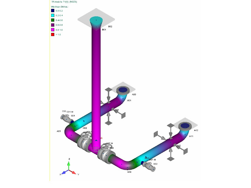 Fig 4. Analysis of the stress state in the pipeline based on the previously made model